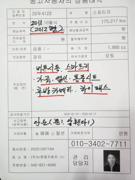 ÀÚµ¿Â÷°ü¸®¹ý ½ÃÇà±ÔÄ¢ Á¦120Á¶ÀÇ ±ÔÁ¤¿¡ µû¶ó º°Áö Á¦82È£ ¼½Ä [Áß°íÀÚµ¿Â÷¼º´É.»óÅÂÁ¡°Ë±â·ÏºÎ]¸¦ ¹ßÇàÇÑ ¼º´É.»óÅÂÁ¡°ËÀÚ ¹× ¸Å¸Å¾÷ÀÚ´Â ¾Æ·¡ÀÇ º¸Áõ±â°£ ¶Ç´Â º¸Áõ°Å¸® À̳»¿¡ Áß°íÀÚµ¿Â÷¼º´É.»óÅÂÁ¡°Ë±â·ÏºÎ¿¡ ±âÀçµÈ ³»¿ë°ú ÀÚµ¿Â÷ÀÇ ½ÇÁ¦ ¼º´É.»óŰ¡ ´Ù¸¥ °æ¿ì °è¾à ¶Ç´Â °ü°è¹ý·É¿¡ µû¶ó ¸Å¼öÀο¡ ´ëÇÏ¿© Ã¥ÀÓÀ» Áý´Ï´Ù.